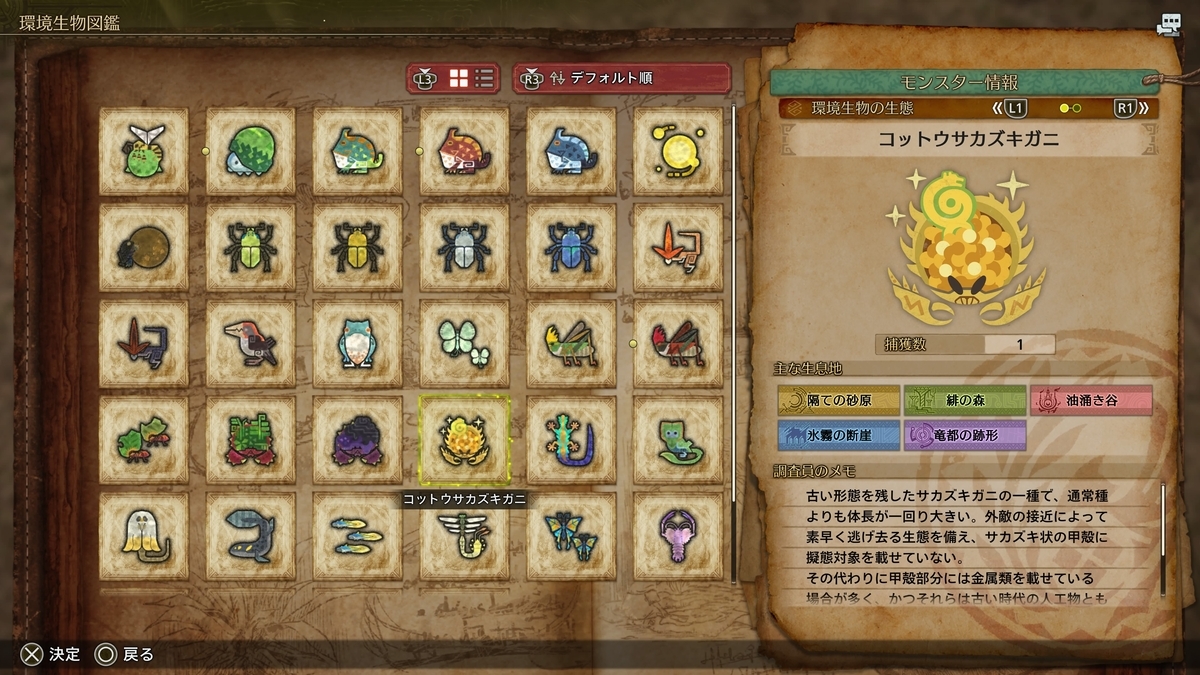 以前から存在したが本作でも討伐するモンスターとは別に小さな虫や動物などの環境生物もおり、生物によっては時間と共に変化するケースもある。