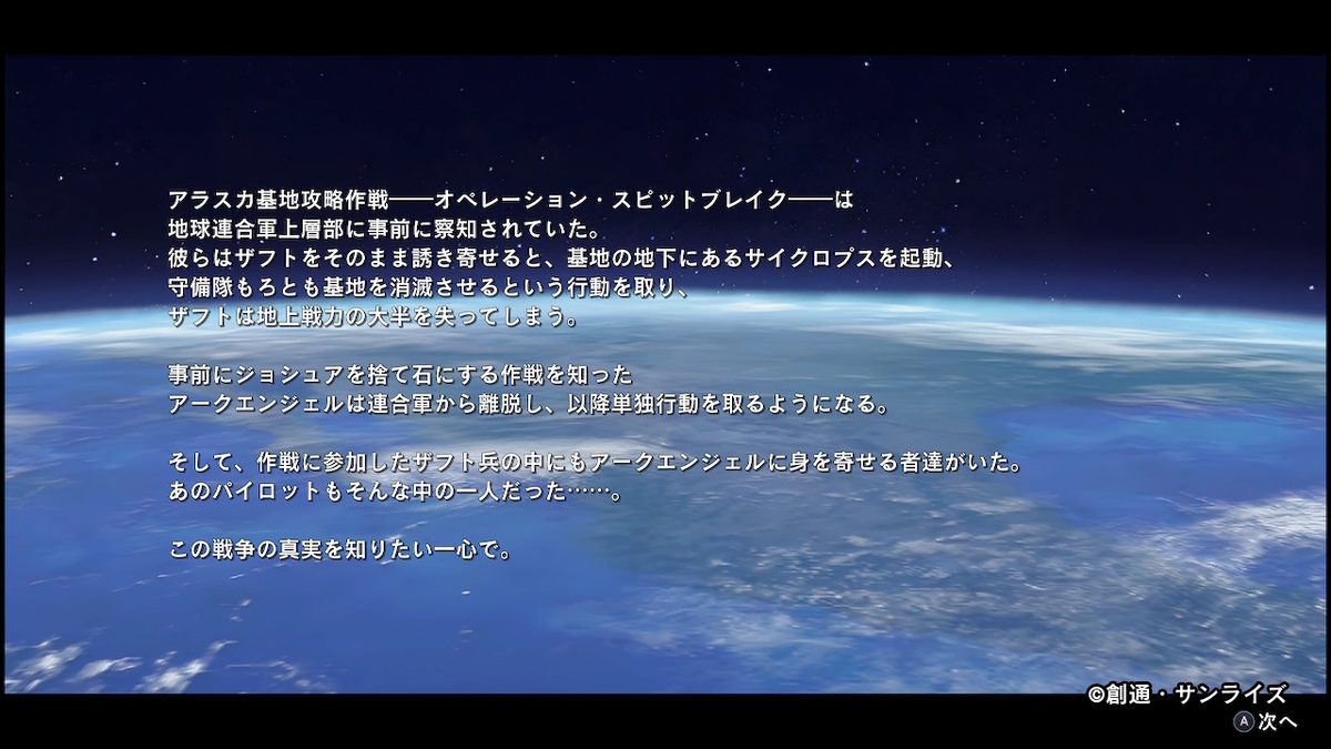 プレイアブル機体にしても劇中で活躍した主役級のものから、作品を支える量産機、そして大型のMAまでもが操作可能であるため、様々な機体を操作する楽しみがある。