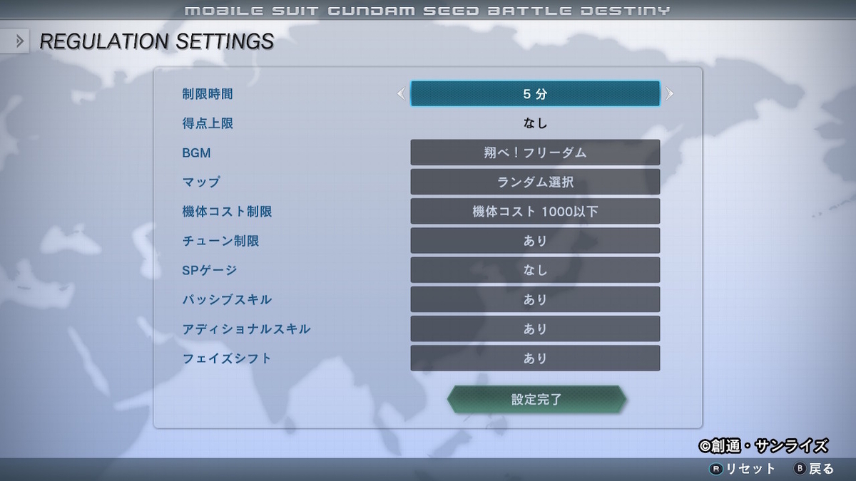 予め用意されたステージとは別に自身でレギュレーションを設定して戦えるモードも用意されている。